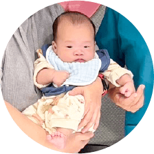 成功個案帶著可愛的寶寶回到基生,與魏琦峰院長合影留念。